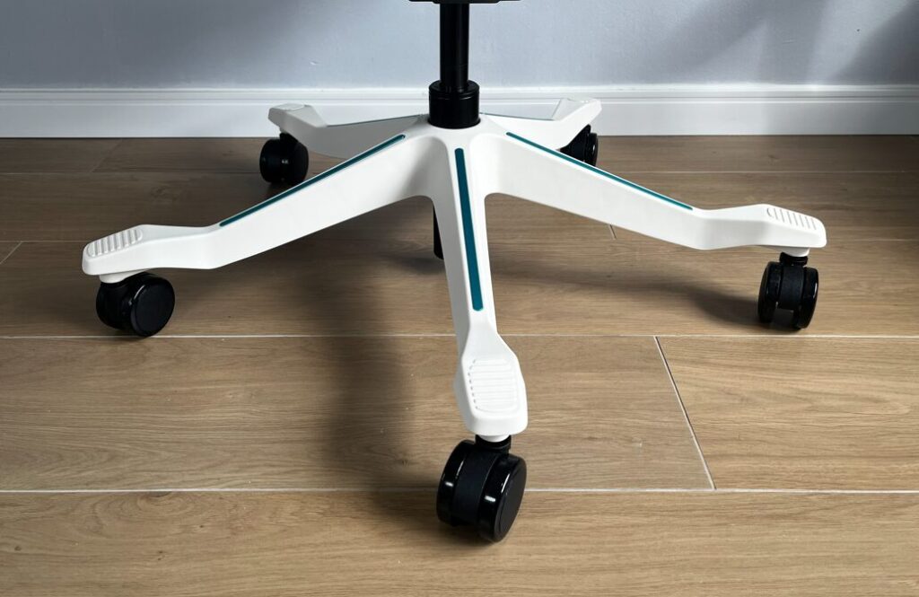 Vamos começar pela estrutura, a Vector conta com um conjunto de rodas de 65mm, que deslizam muito bem sobre a superfície, leve, e praticamente sem ruídos mesmo em movimentações mais bruscas. As rodas são construídas em P.U. Possuindo assim, proteção anti riscos.