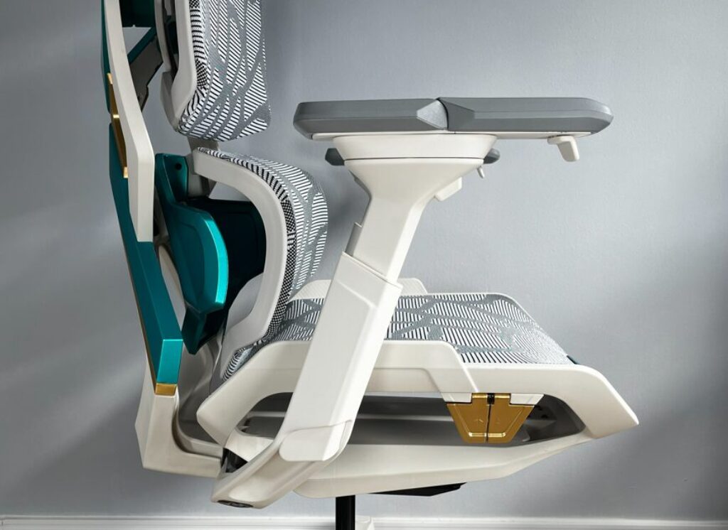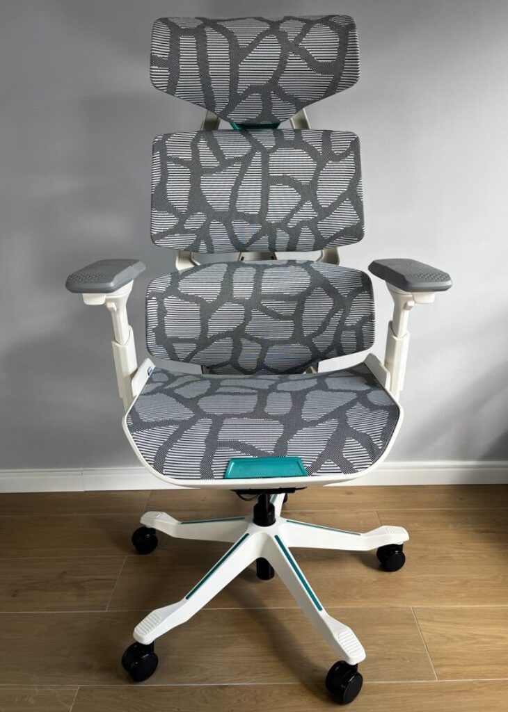 Partindo para o tecido, aqui a cadeira é revestida por uma estrutura em bicamada dupla de mesh com poliéster. Com uma boa qualidade de construção e trazendo frescor sem acumular calor no corpo do usuário em médias e longas horas de uso.