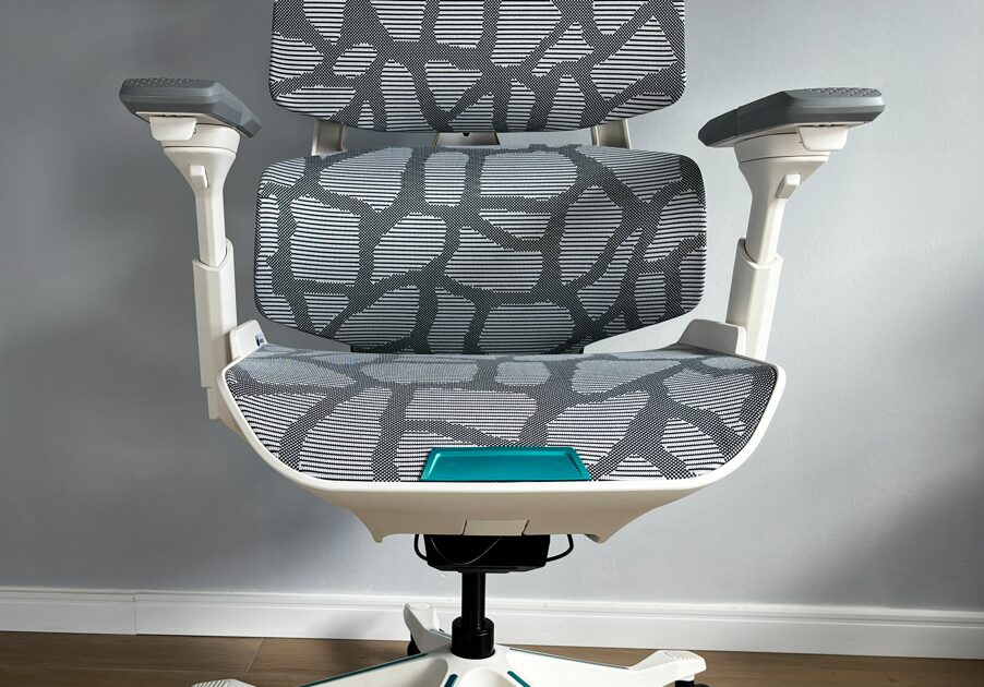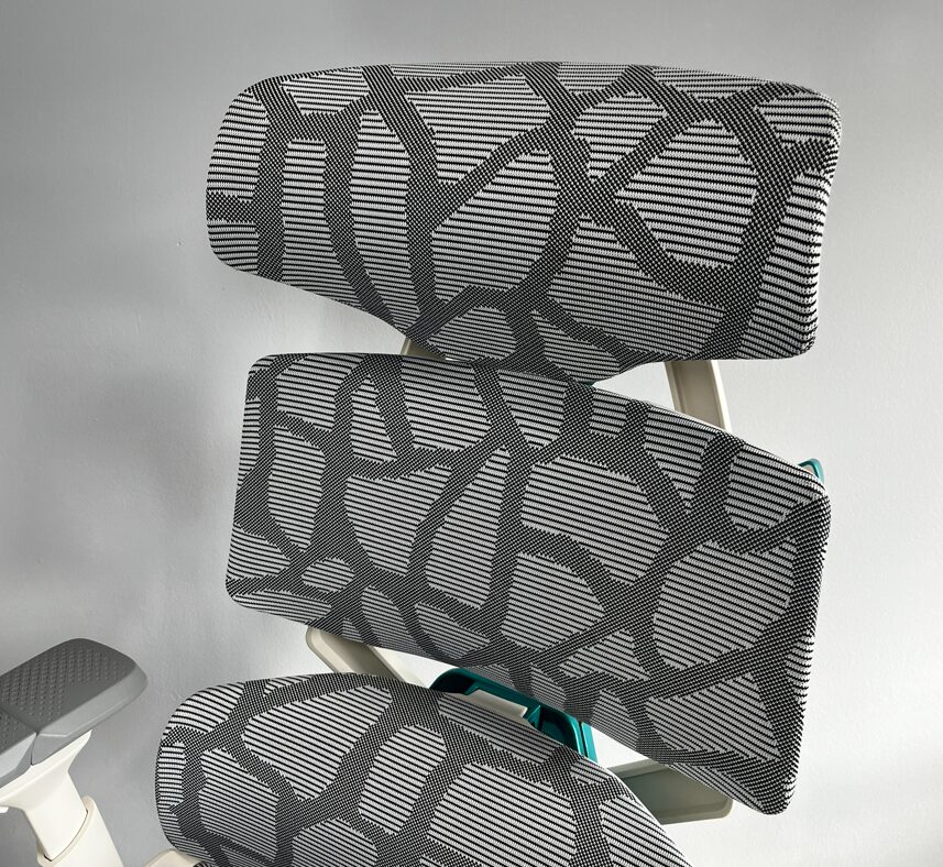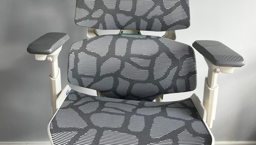 Partindo para o tecido, aqui a cadeira é revestida por uma estrutura em bicamada dupla de mesh com poliéster. Com uma boa qualidade de construção e trazendo frescor sem acumular calor no corpo do usuário em médias e longas horas de uso.