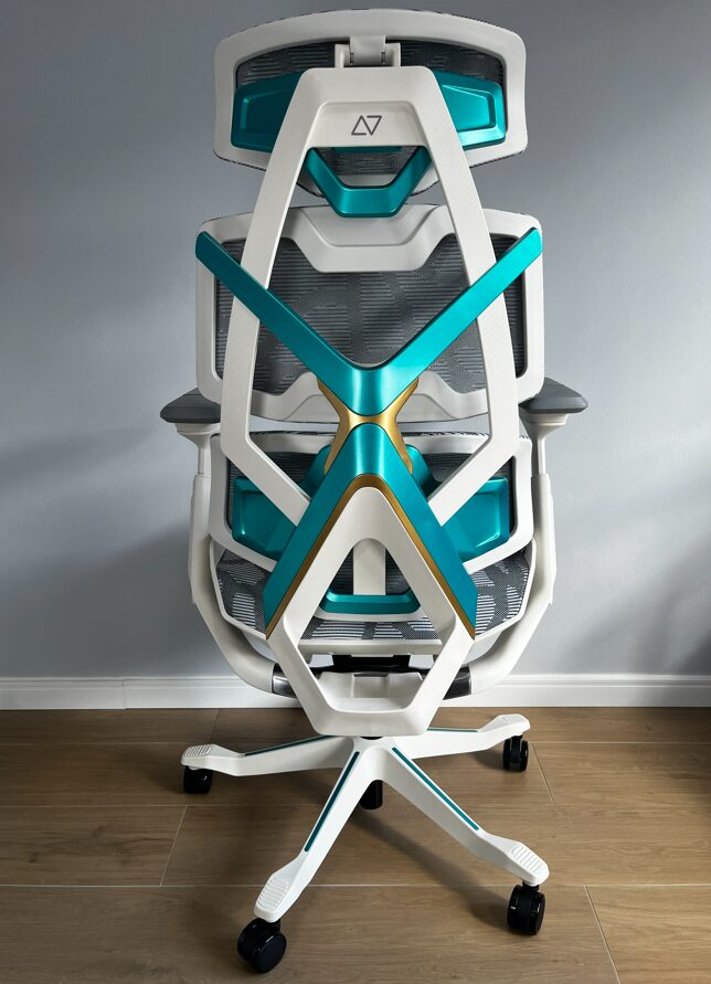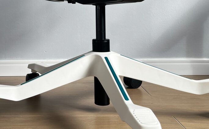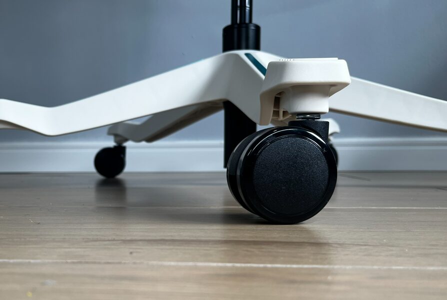 Vamos começar pela estrutura, a Vector conta com um conjunto de rodas de 65mm, que deslizam muito bem sobre a superfície, leve, e praticamente sem ruídos mesmo em movimentações mais bruscas. As rodas são construídas em P.U. Possuindo assim, proteção anti riscos.