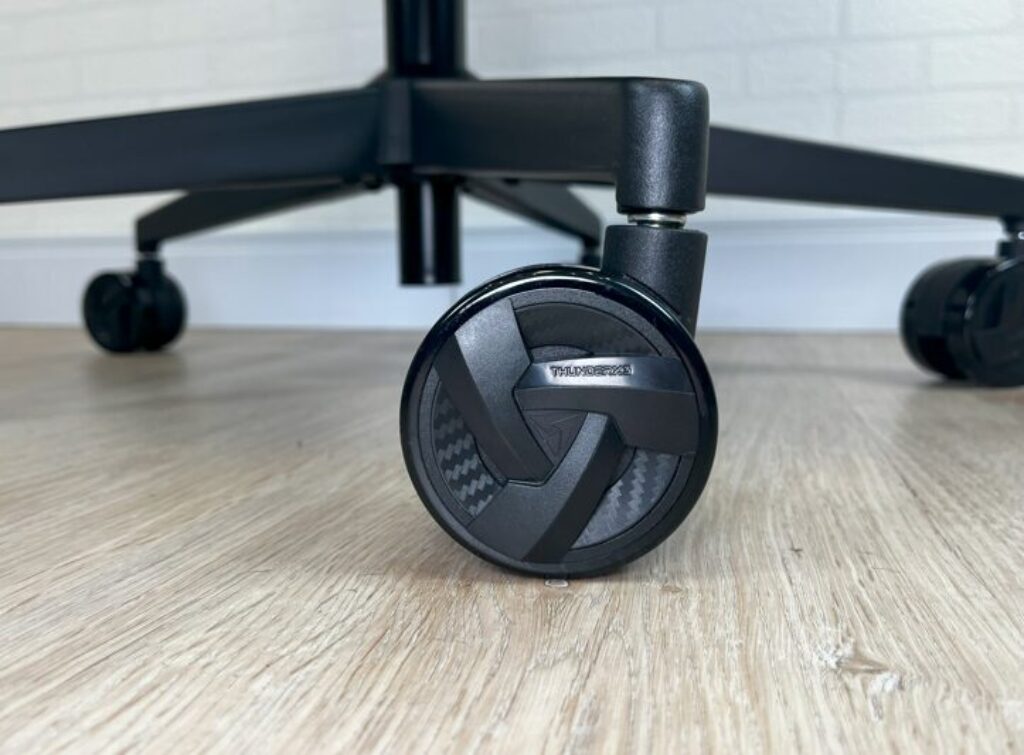 Vamos começar pela estrutura, a Core Smart Loft (tecido) conta com um conjunto de rodas de 75mm, que deslizam extremamente bem sobre a superfície, leve, e praticamente ZERO ruídos mesmo em movimentações mais bruscas. As rodas são construídas em P.U. Possuindo assim, proteção anti riscos. E contam com uma personalização com detalhes do logo da marca em baixo relevo de excelente qualidade.