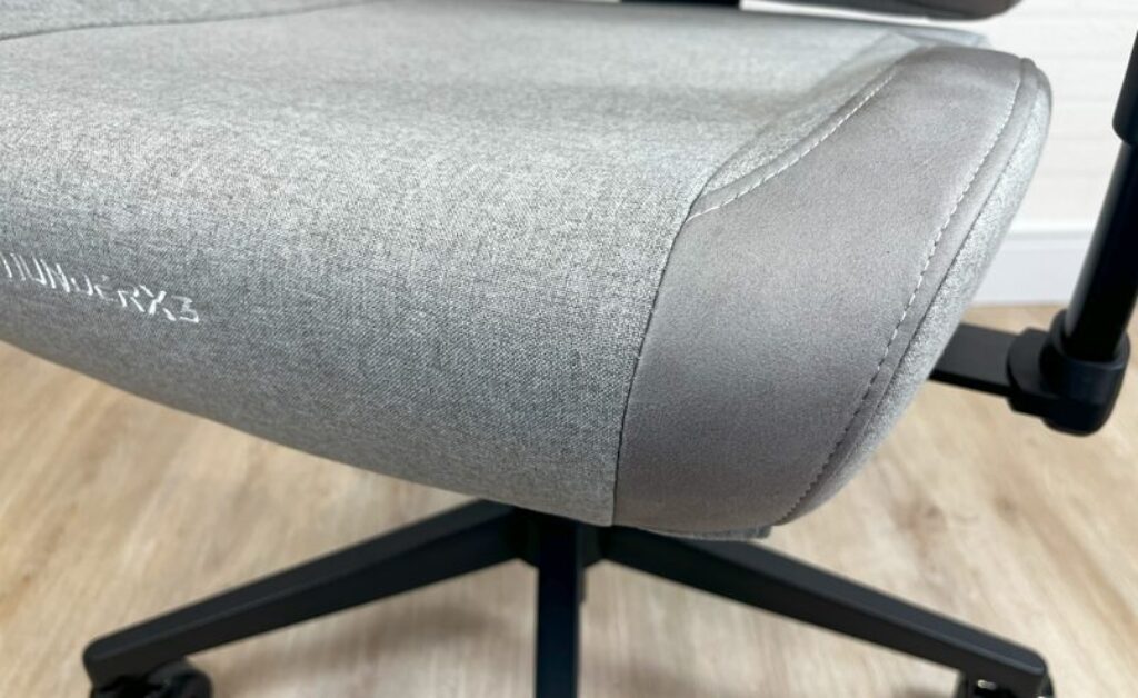Partindo para o tecido, na versão LOFT, aqui a cadeira é revestida predominantemente por tecido knit e recortes em camurça. Com um ótima qualidade de construção em geral.
