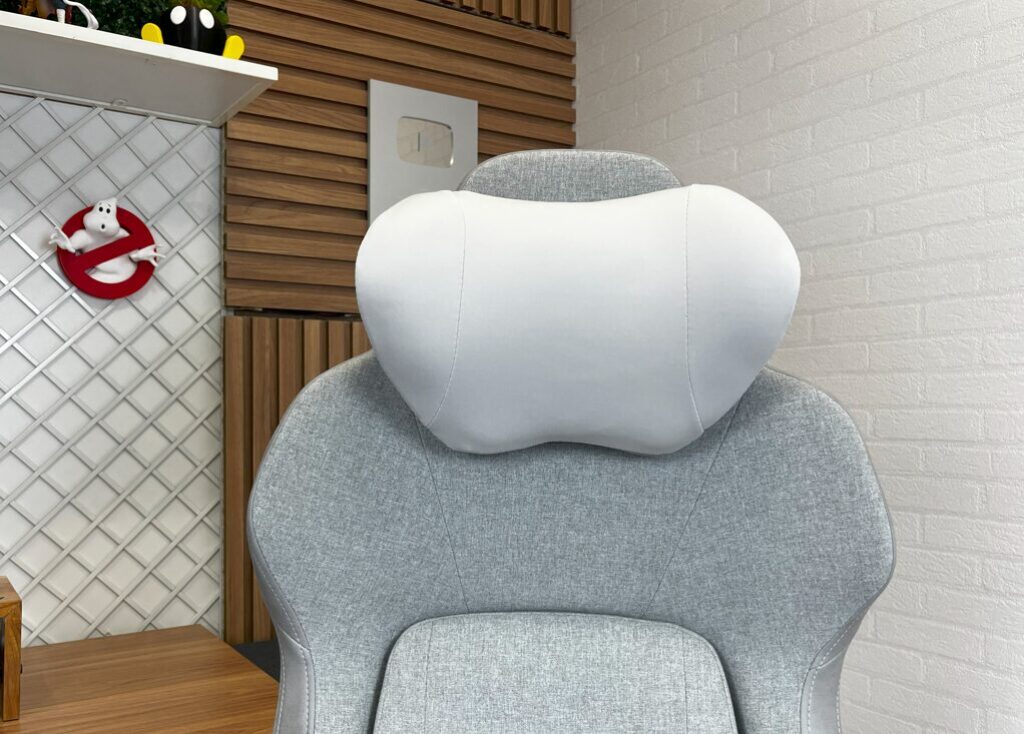 A Core Smart tem um apoio de cabeça/cervical semicircular revestido em tecido, possui uma boa qualidade de construção e conforto ao usuário.