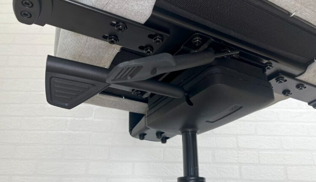 Seu mecanismo é o Sync5, com uma ótima qualidade de construção. Que permite o ajuste de altura do assento, reclinação sincrona entre encosto e assento, ajuste de profundidade do assento e função balanço/relax.