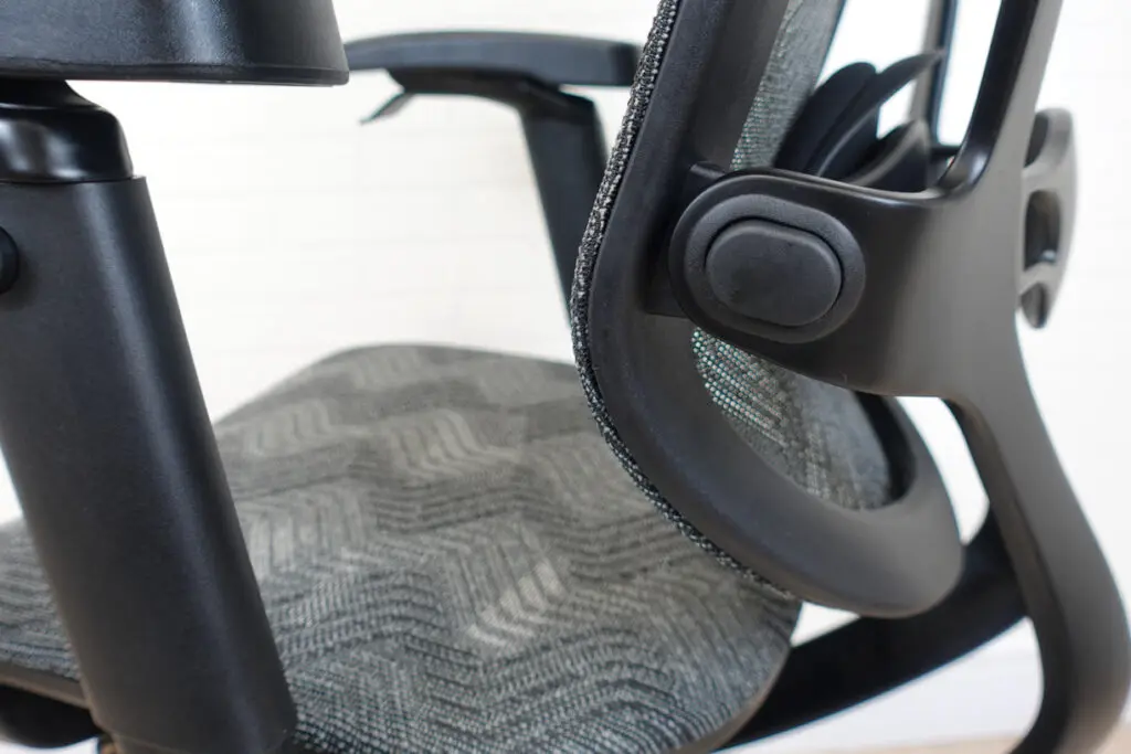 O encosto da Iryna é regulável em angulação, com 5 pontos de trava (1° grau em cada ponto). Com um design que os ombros dos usuários ficam livre de movimentação, ficando mais confortável para longas jornadas de uso sobre o produto.