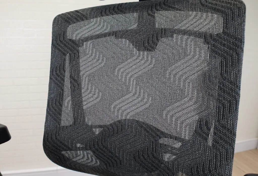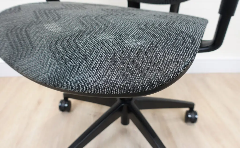 Partindo para o tecido, aqui a cadeira é revestida 100% Mesh, tanto no assento como no encosto, com a sua formulação composta em 33% poliéster + 67% poli-elastômero.